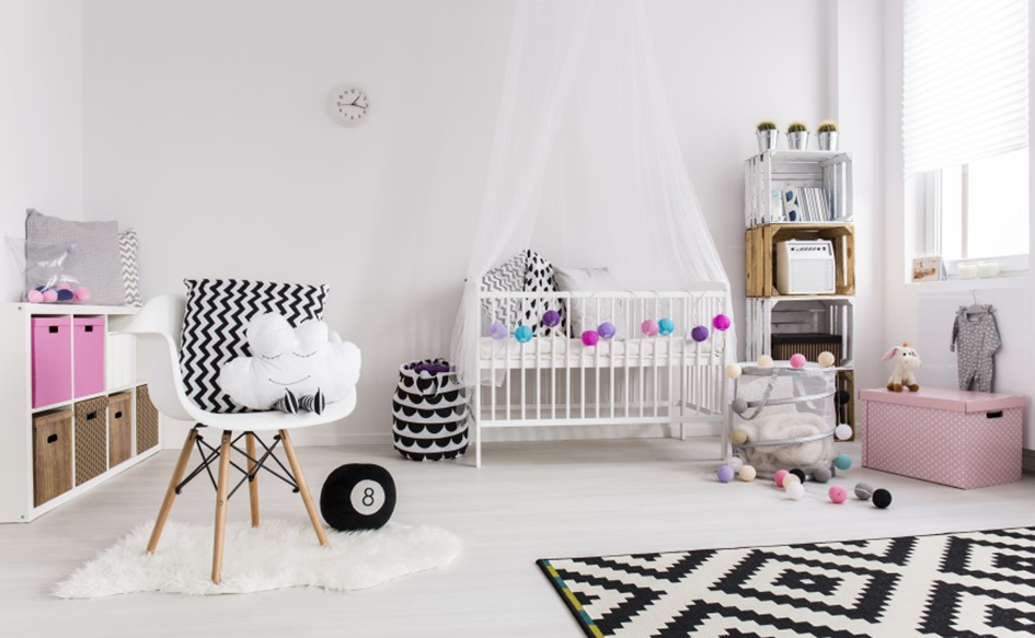 Pokud se vám použití černé a bílé jako dominantních barev v ložnici zdá riskantní, co potom dětský pokoj? Ukazuje se, že to není špatný nápad – černobílý pokoj může vašemu dítěti dodat pocit bezpečí a stability. Aby to však nebylo moc jednotvárné, zkombinujme to s trochou světle růžové, hnědé nebo béžové. Dítě díky svým hračkám a knížkám, které rychle zaplní prázdný prostor, doplní pokoj skutečnými barvami.